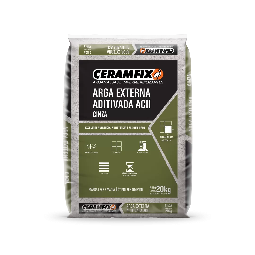 É uma argamassa colante indicada para o assentamento de placas cerâmicas em áreas internas e externas. Esta argamassa é produzida com matérias-primas selecionadas o que garante excelente aderência e resistência mecânica. O produto é classificado como ACII de acordo com a ABNT NBR 14081-1.